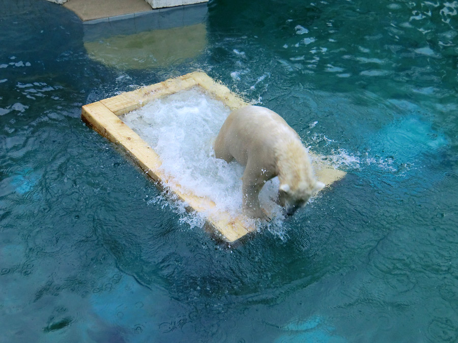 Am Freitag Nachmittag vergnügte sich Eisbärmädchen ANORI auf der großen Freianlage im Zoologischen Garten der Stadt Wuppertal ausdauernd im Wasser.