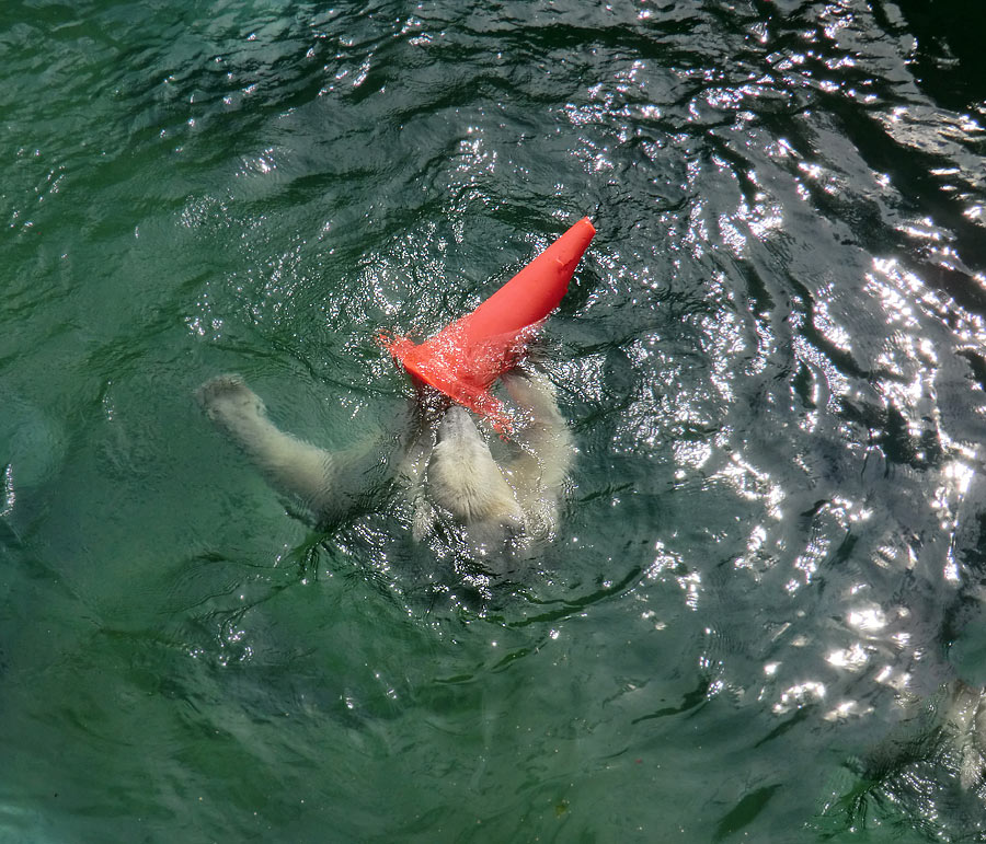 Eisbärjungtier ANORI am 11. August 2013 im Wuppertaler Zoo.
