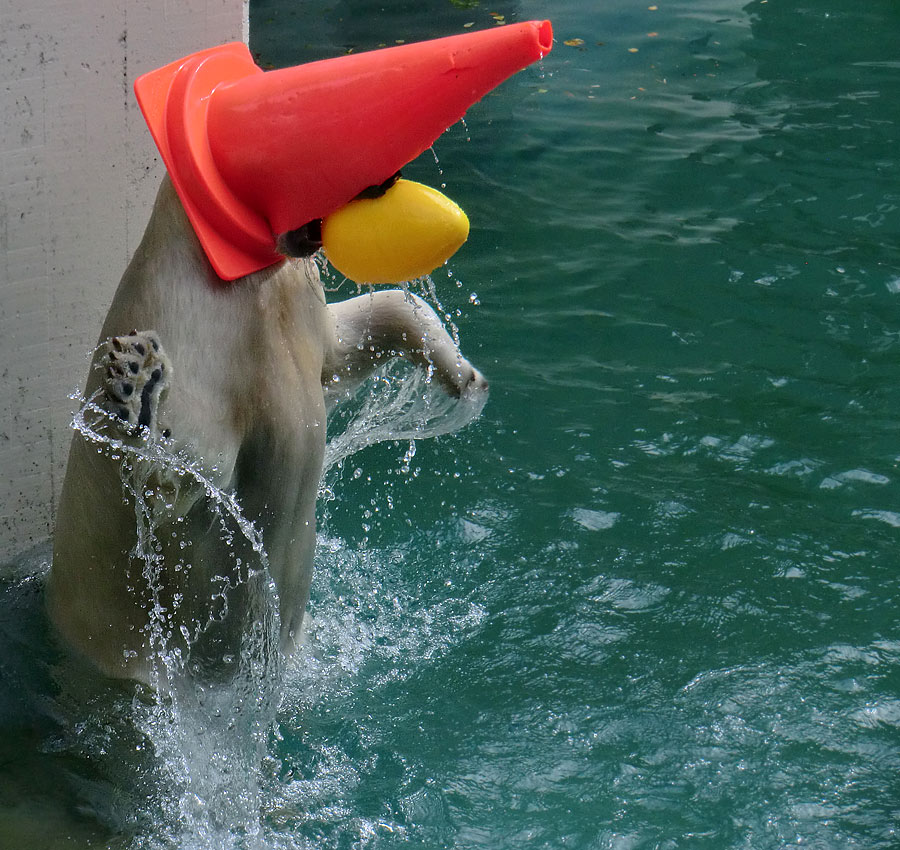 Das Hütchenspiel der Eisbärin ANORI erfreute am Sonntag Nachmittag die Besucher/innen im Zoologischen Garten der Stadt Wuppertal.