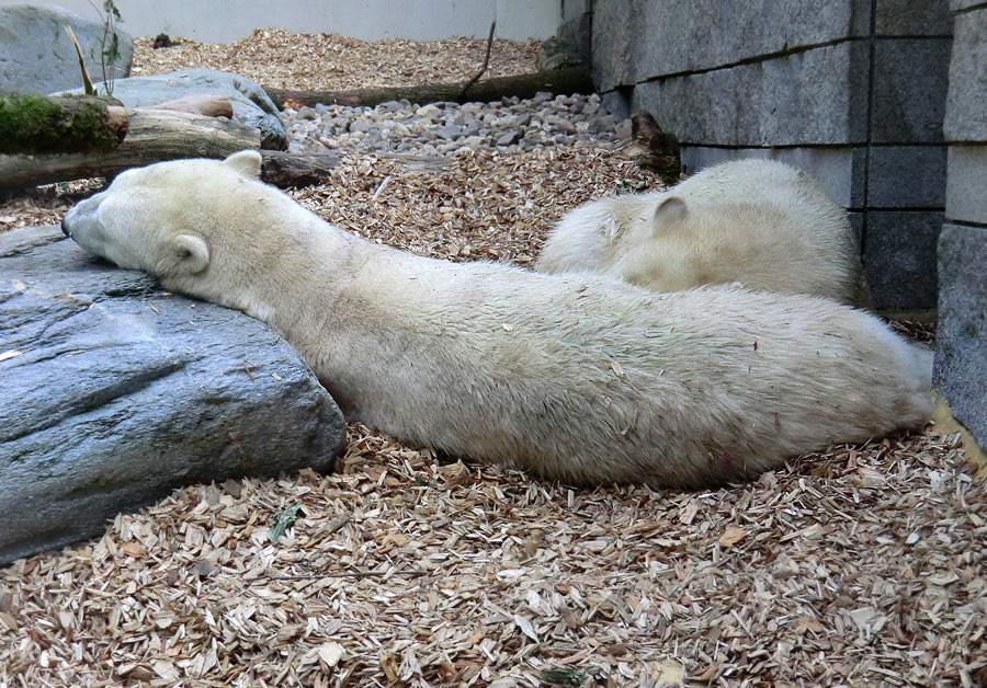 Eisbärjungtier ANORI und Eisbärin VILMA am 11. August 2013 im Zoo Wuppertal.