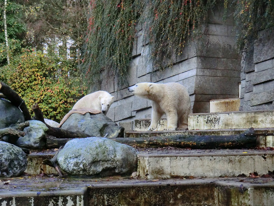Eisbärin ANORI und Eisbär LUKA im Wuppertaler Zoo am 26. Oktober 2013.