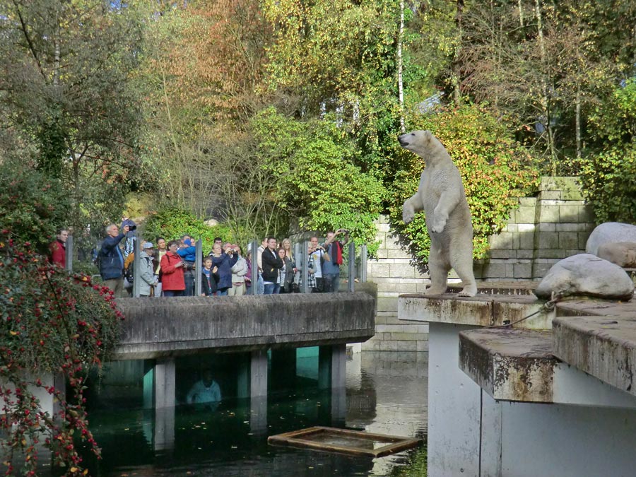 Am frühen Samstag Nachmittag, dem 26. Oktober 2013, wollte das Tierpflegeteam auf der großen Freianlage für Eisbären im Zoologischen Garten der Stadt Wuppertal den beiden Eisbären Leckereien und Futter anbieten.