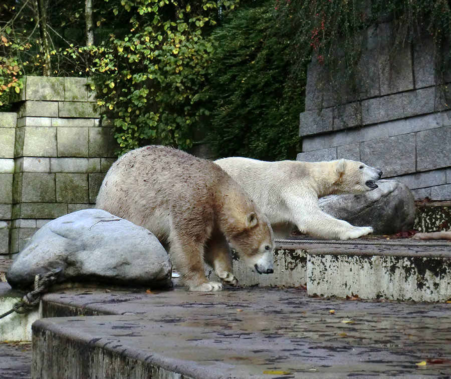 Eisbärin ANORI und Eisbär LUKA im Zoologischen Garten Wuppertal am 26. Oktober 2013.
