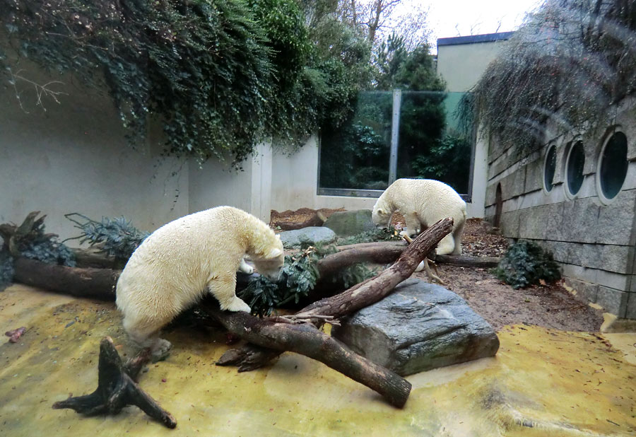 Eisbärin ANORI und Eisbär LUKA im Zoologischen Garten Wuppertal am 24. Dezember 2013.