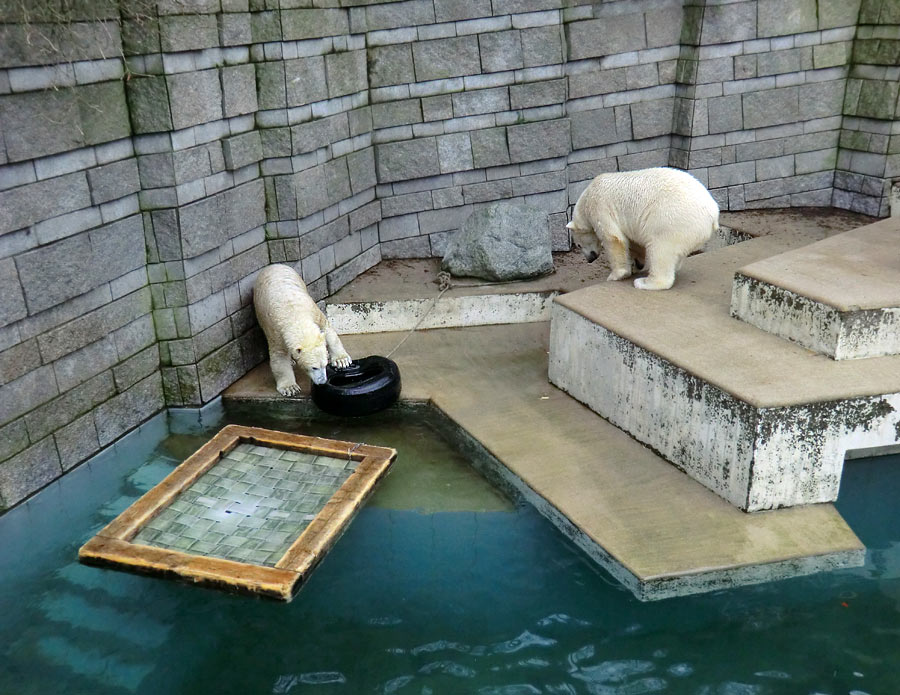 Eisbärin ANORI und Eisbär LUKA im Zoologischen Garten Wuppertal am 26. Dezember 2013.