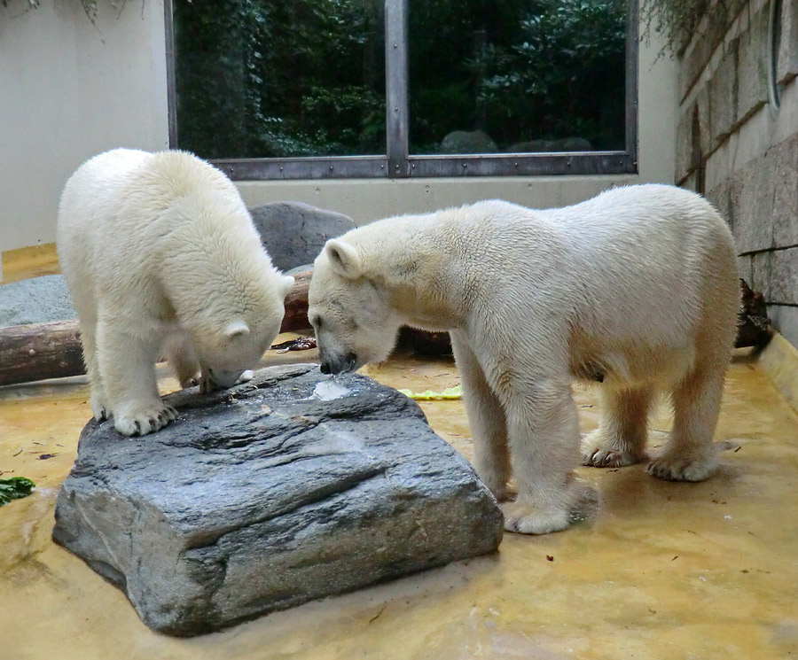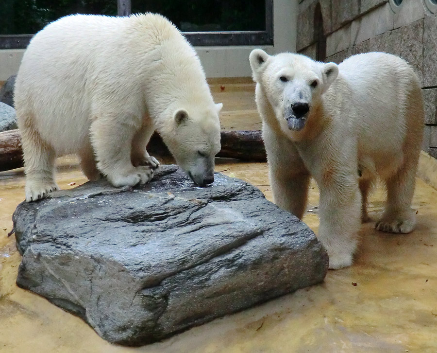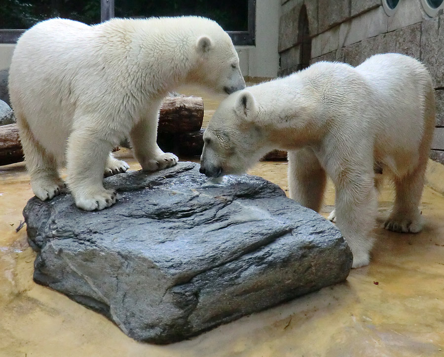 Eisbärjungtier ANORI und Eisbärin VILMA am 13. Mai 2013 im Zoo Wuppertal.