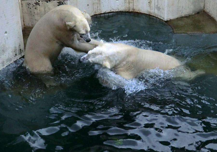 Am Freitag Nachmittag, dem 3. Januar 2014, gab es spielerische Raufereien der beiden Polarbären im Zoologischen Garten der Stadt Wuppertal.