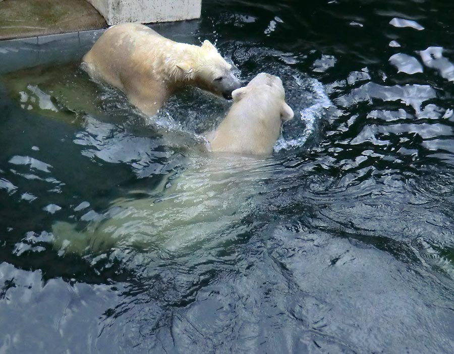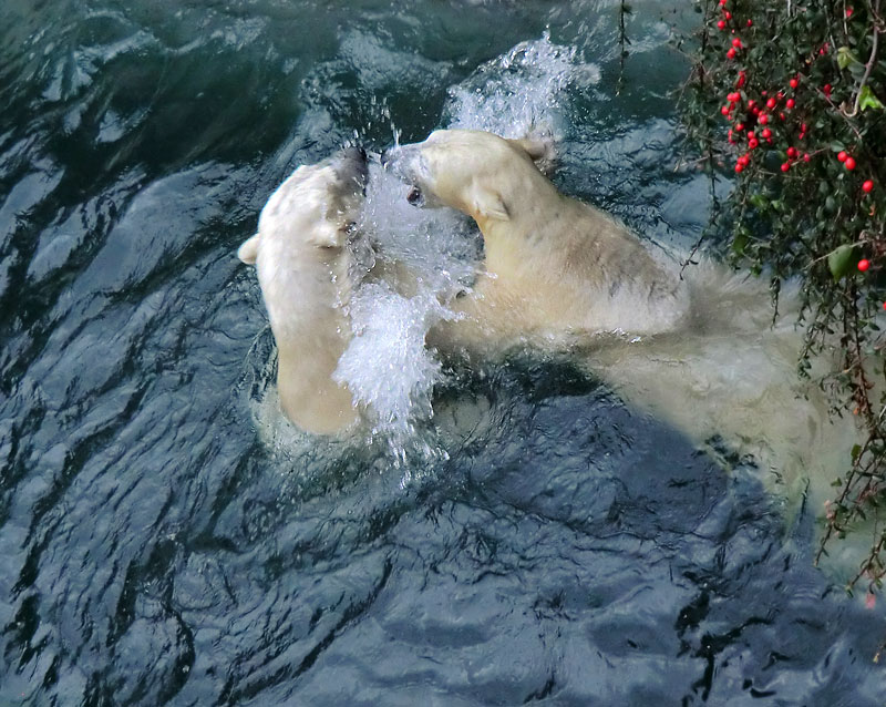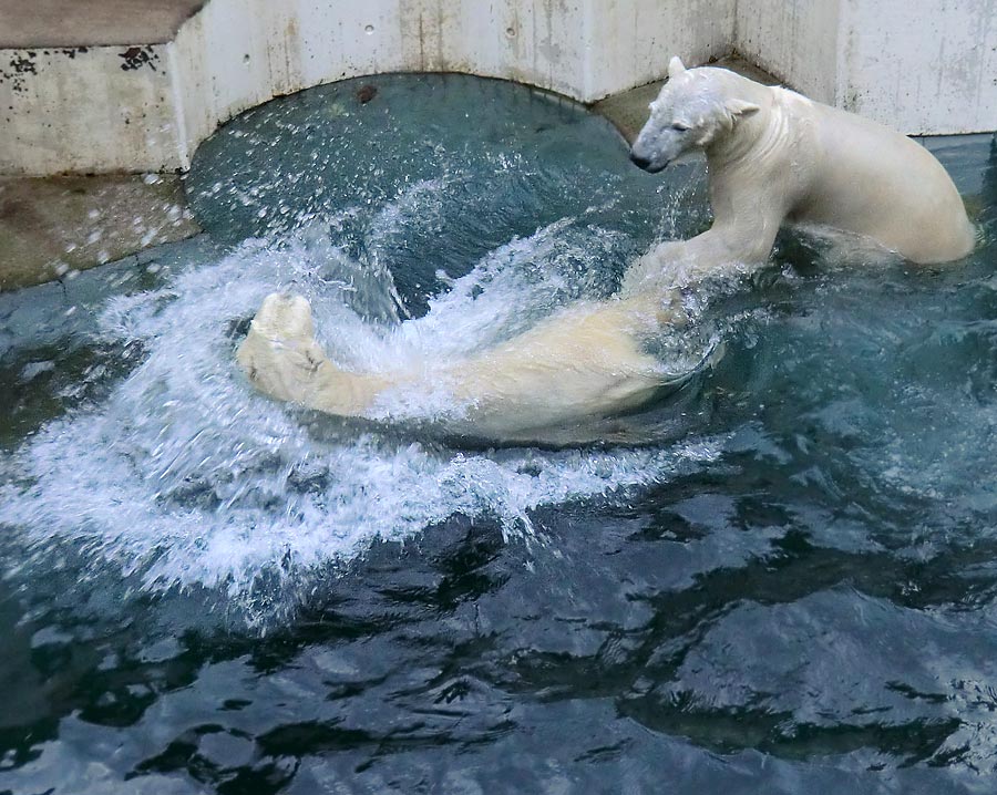 Spielende Eisbären im Wasser im Wuppertaler Zoo am 3. Januar 2014.
