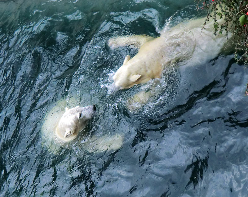 Eisbären (Thalarctos maritimus) LUKA und ANORI am 3. Januar 2014 im Wuppertaler Zoo.