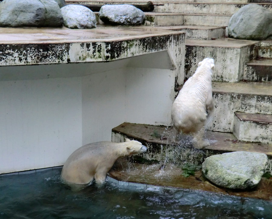 Eisbärin ANORI und Eisbär LUKA im Wuppertaler Zoo am 3. Januar 2014.