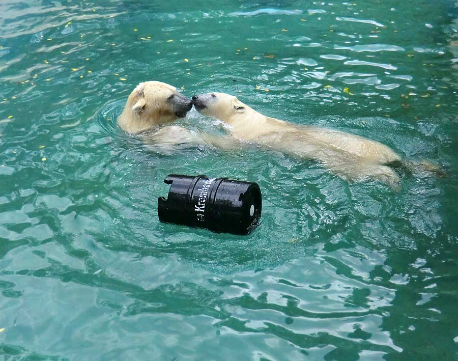 Eisbärin ANORI und Eisbär LUKA waren am Freitag, dem 22. August 2014, zeitweise sehr aktiv.