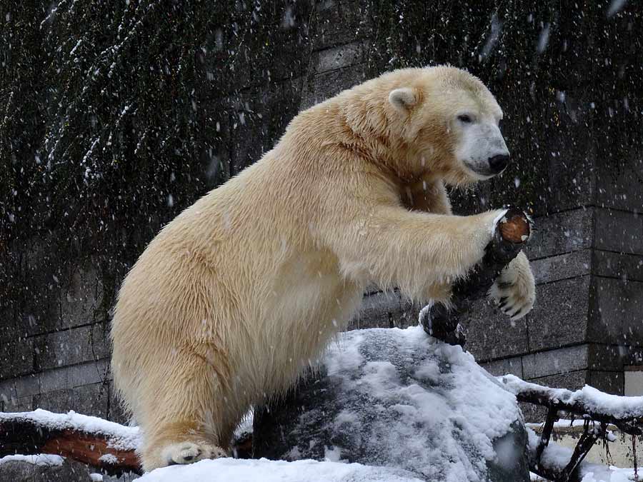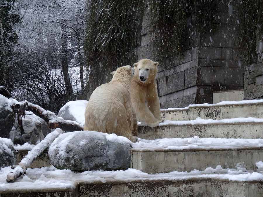 Die beiden Eisbären im Zoologischen Garten der Stadt Wuppertal schienen die eisigen Temperaturen und die weiße Pracht zu gefallen.