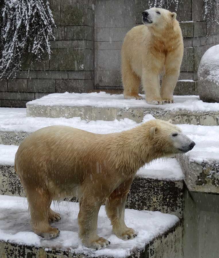 Eisbärin ANORI und Eisbär LUKA im Wuppertaler Zoo am 24. Januar 2015.