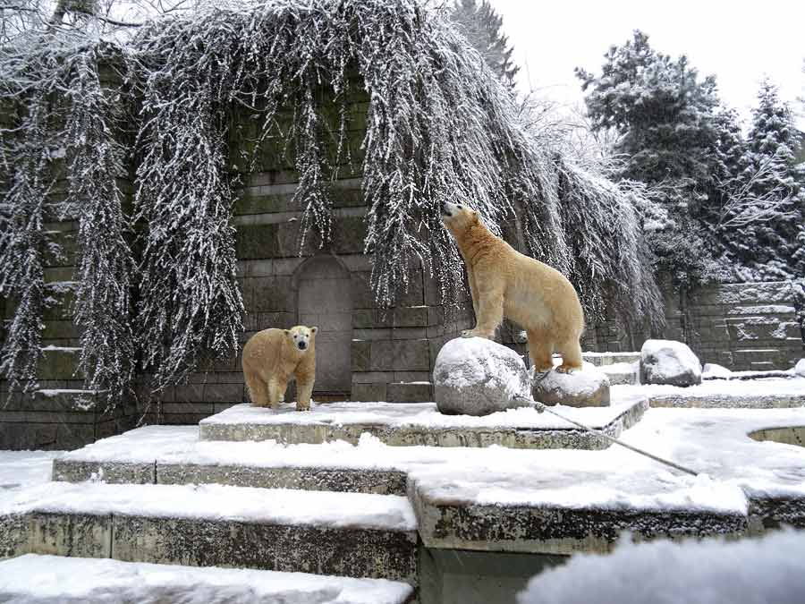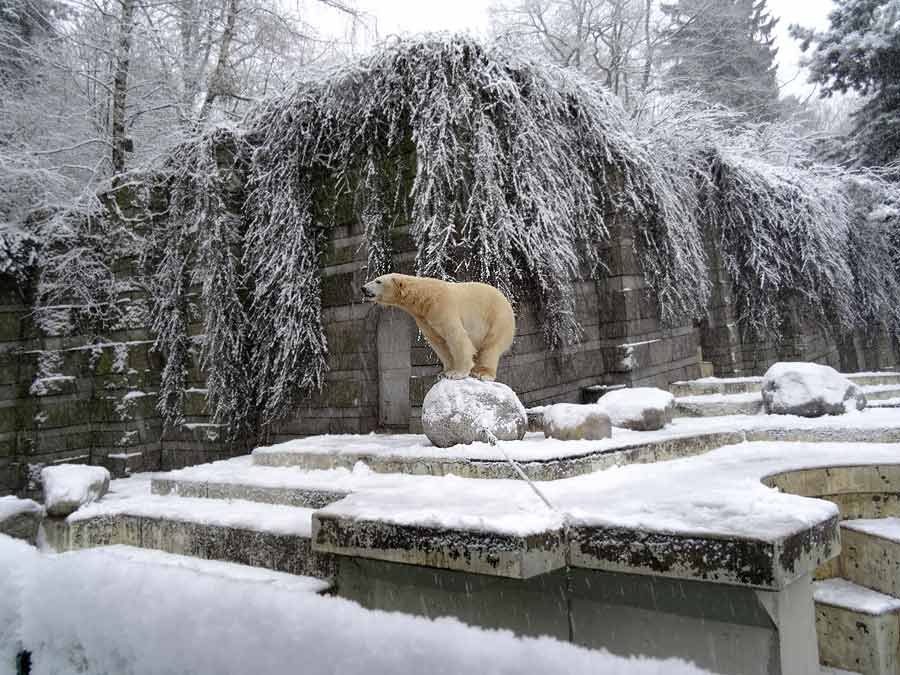 Gegen 9:00 Uhr begann es zu schneien und eine mehrere Zentimeter hohe Schneedecke legte sich auch über den Zoologischen Garten der Stadt Wuppertal.
