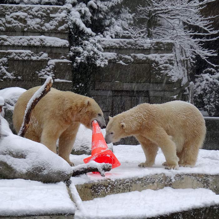 Eisbärin ANORI und Eisbär LUKA im Zoologischen Garten Wuppertal am 24. Januar 2015.
