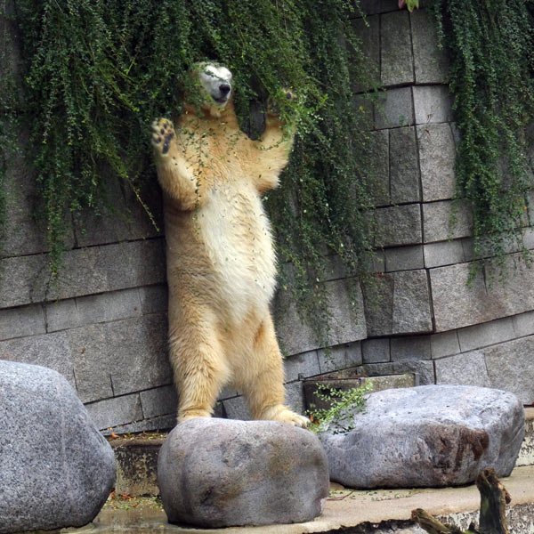 Mehrmals stellte sich die in Wuppertal geborene Eisbärin auf die Hinterbeine und genoss sichtbar das wohlige Gefühl des "Schubbelns".