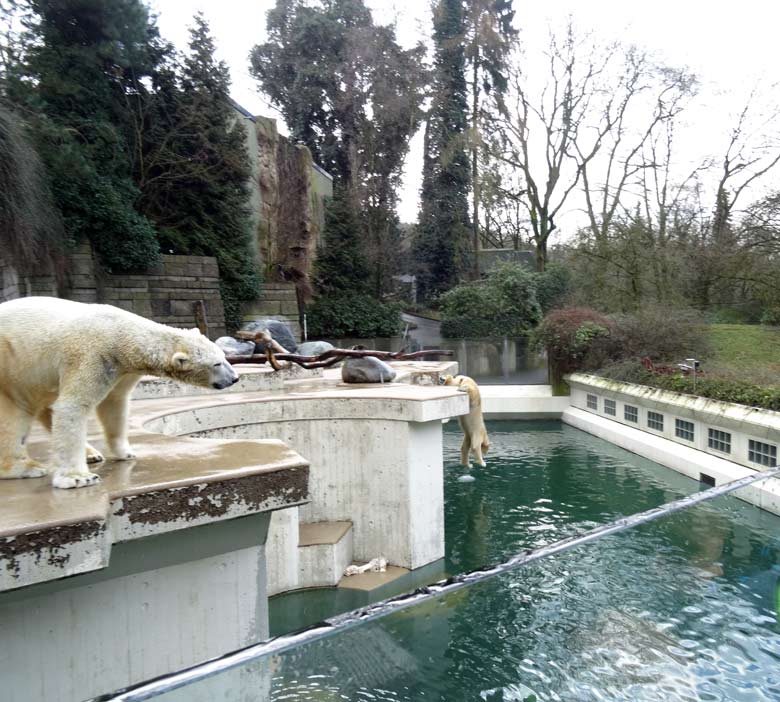 Eisbär LUKA und Eisbärin ANORI am 2. Februar 2017 im Wuppertaler Zoo.