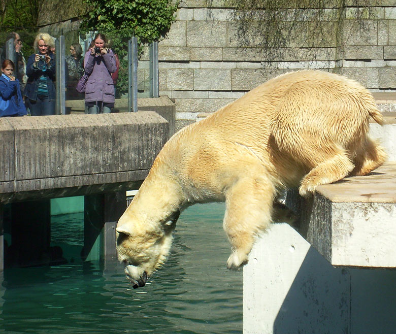 Eisbär Lars beim Sprung ins Wasser im Wuppertaler Zoo am 6. April 2010.