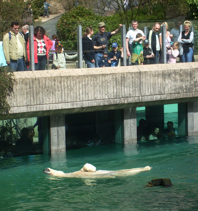 Besucher/innen bei Eisbärin JERKA und Eisbär LARS im Zoo Wuppertal am 7. April 2010.