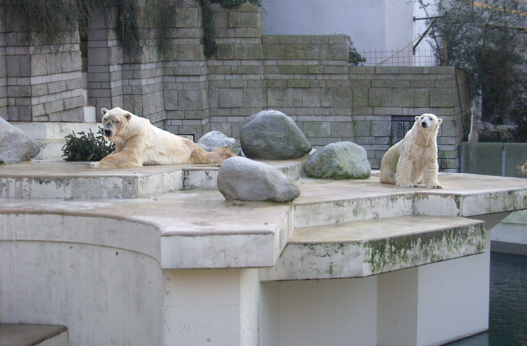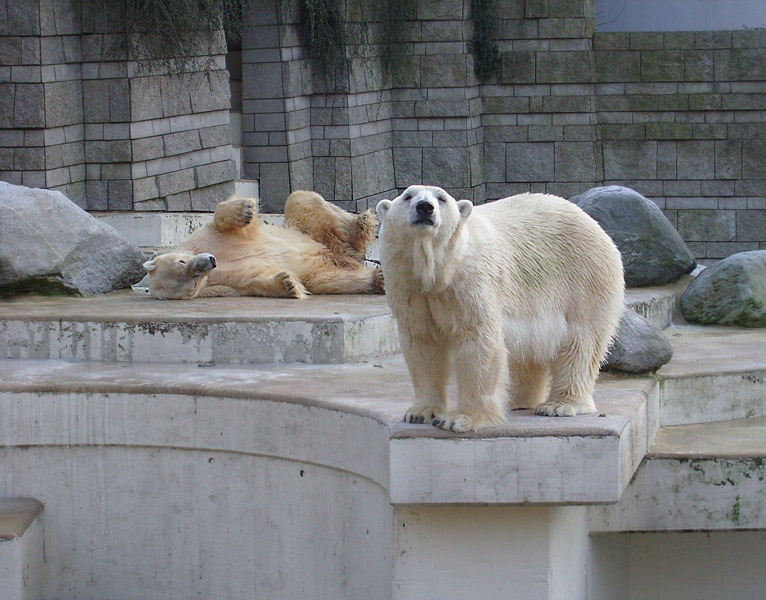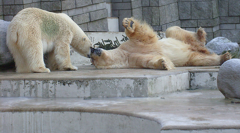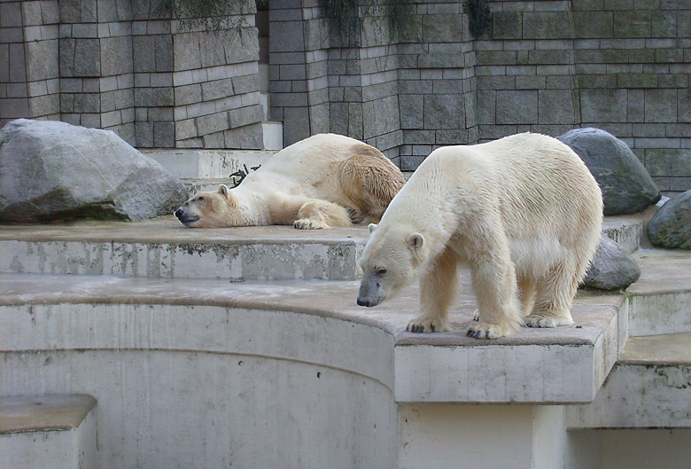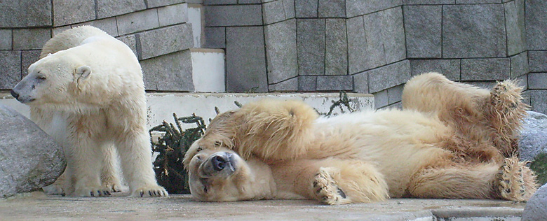 Eisbärin JERKA und Eisbär BORIS am 28. Dezember 2008 im Zoo Wuppertal.