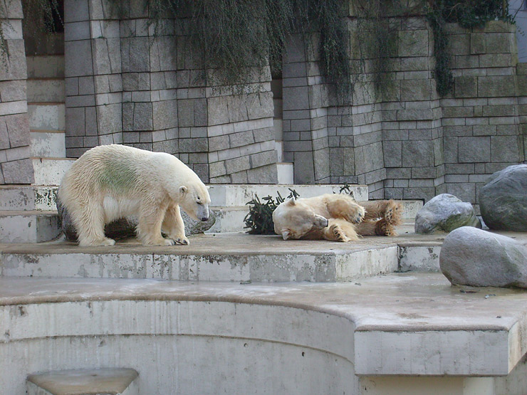 Eisbär BORIS und Eisbärin Jerka am 28. Dezember 2008 im Wuppertaler Zoo.