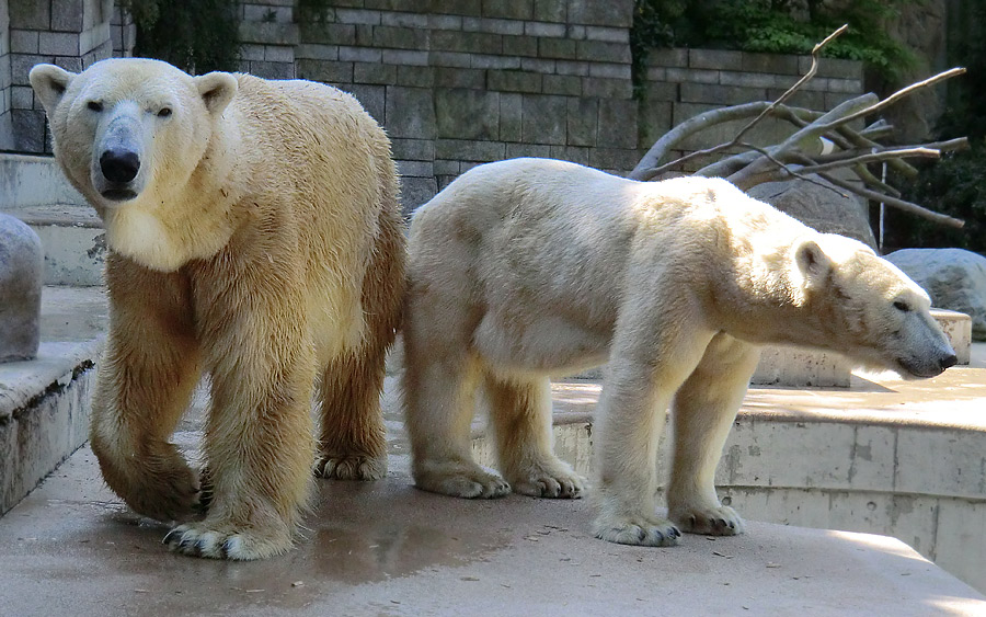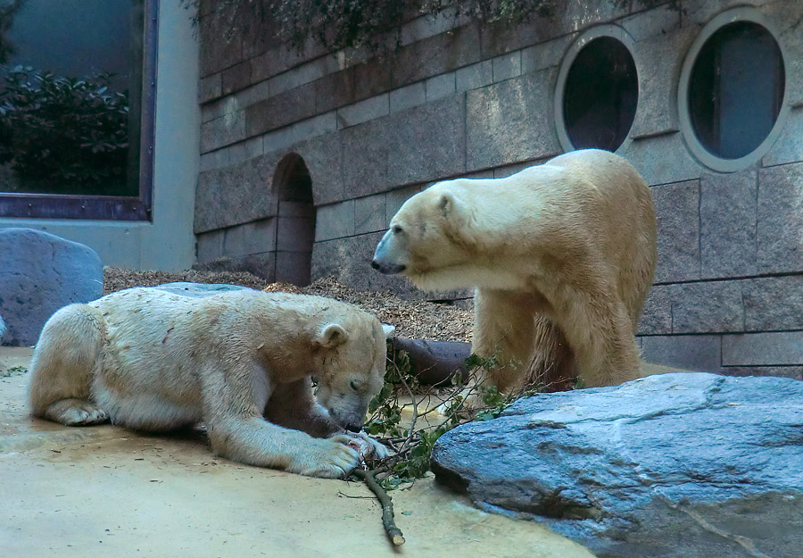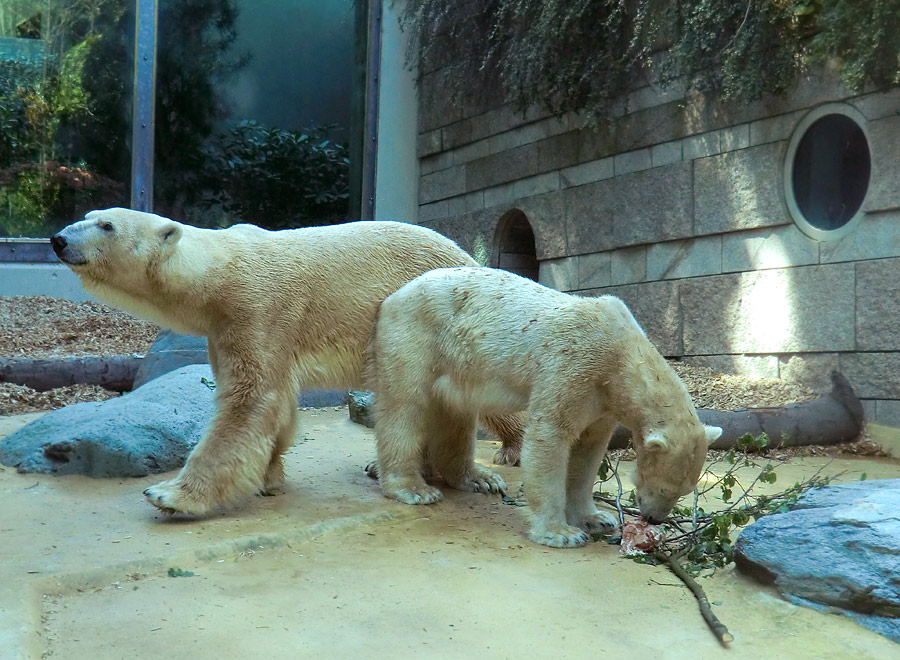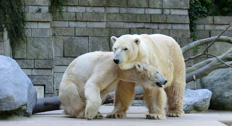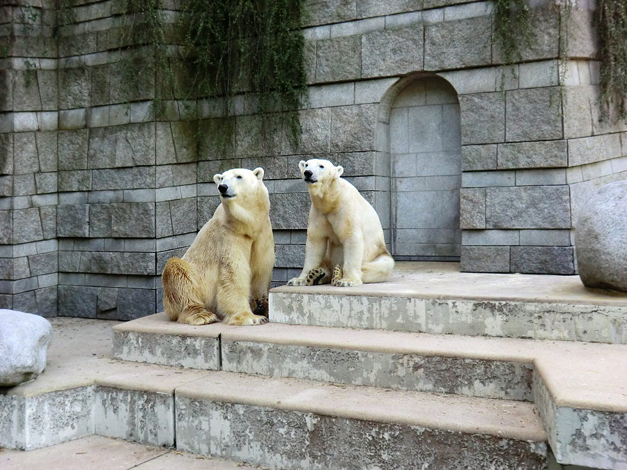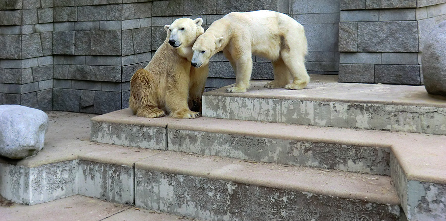 Eisbärin Vilma und Eisbär Lars am 1. Mai 2011 im Zoo Wuppertal.