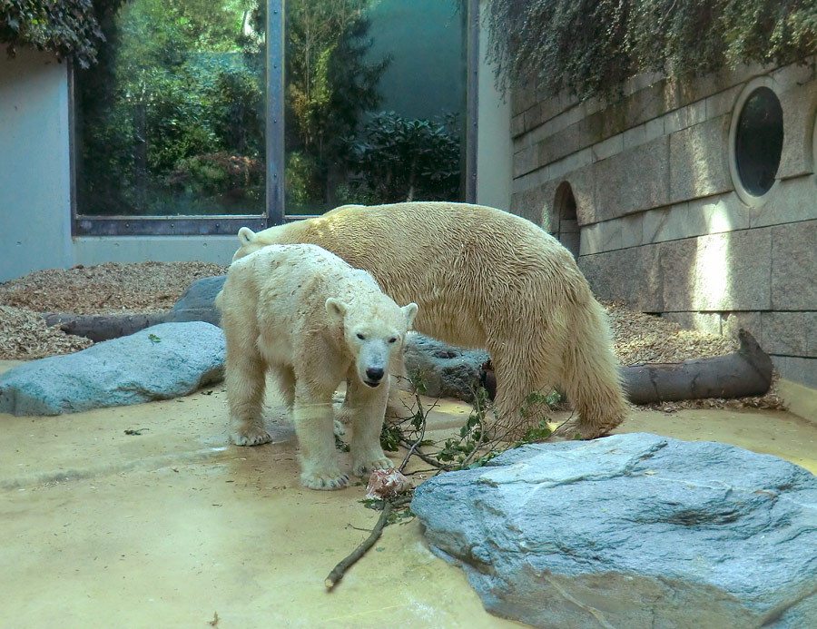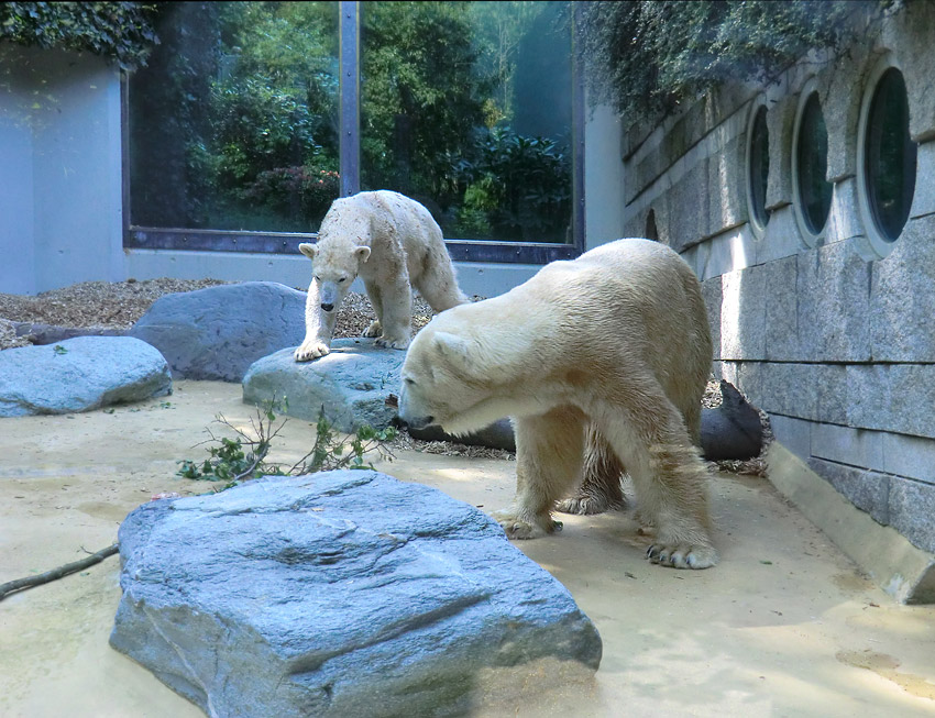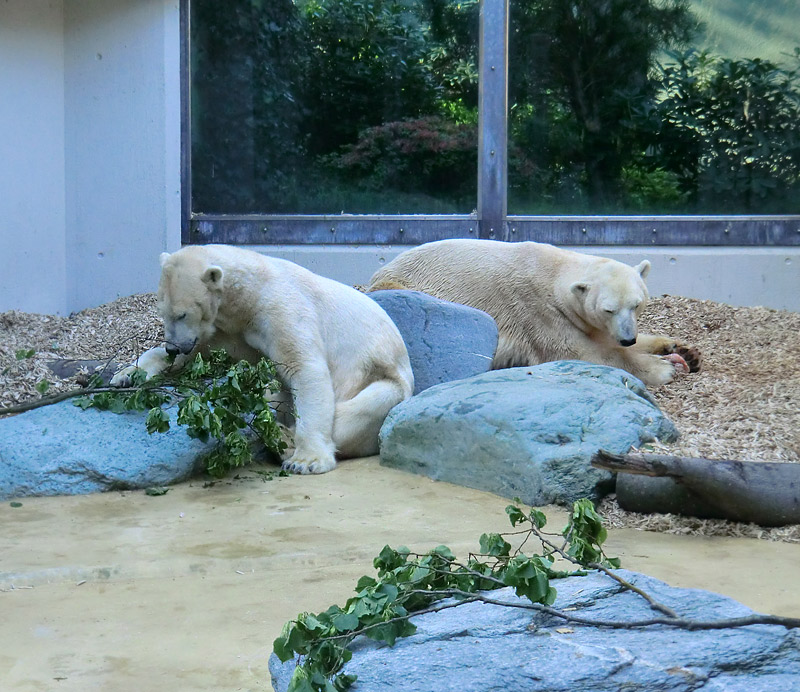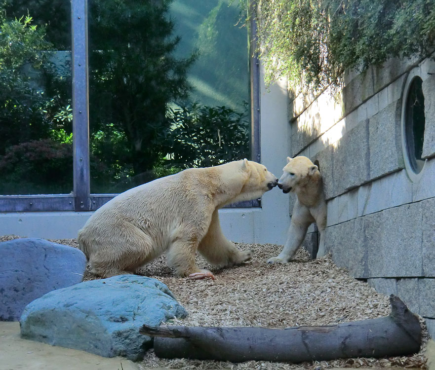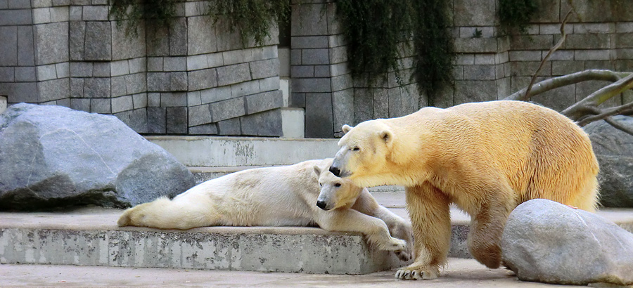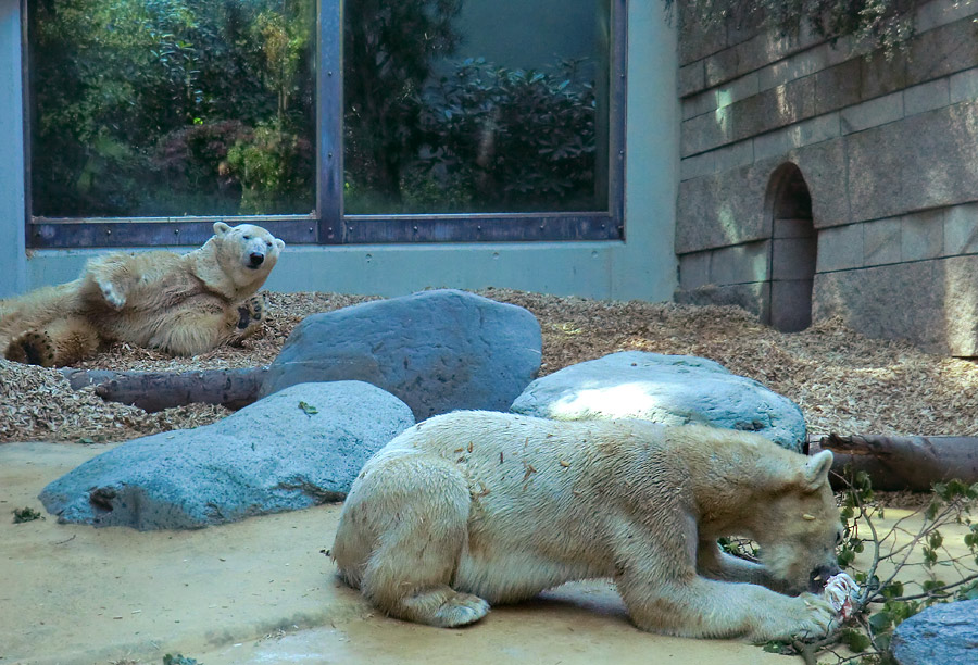 Eisbärin Vilma und Eisbär Lars am 1. Mai 2011 im Zoo Wuppertal.