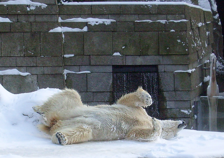 Beide Eisbären genossen sichtlich die eiskalten Temperaturen und wälzten sich mehrfach genüsslich im Schnee.