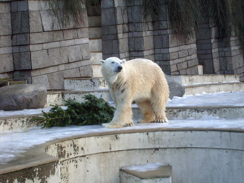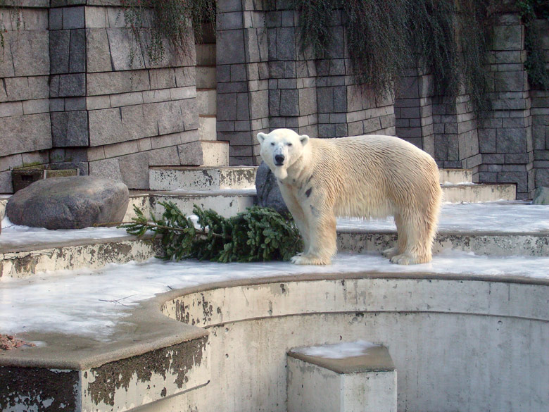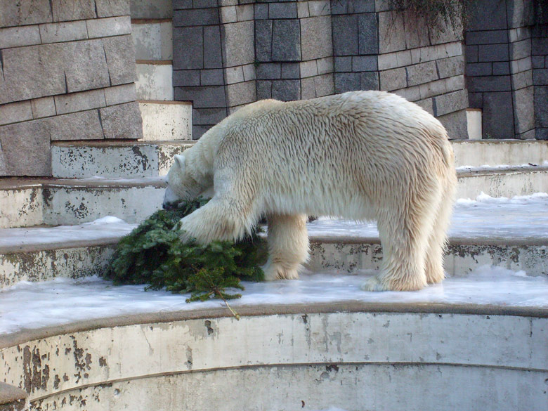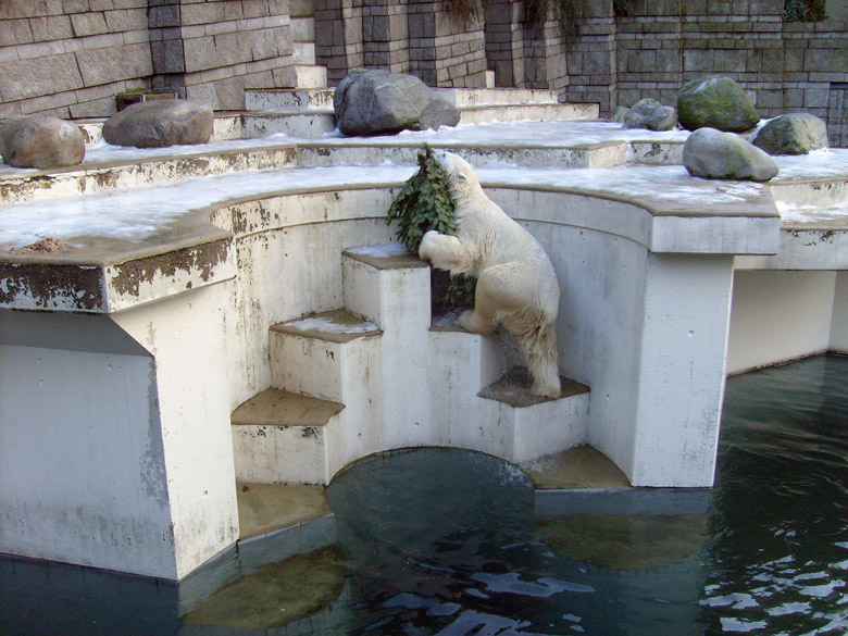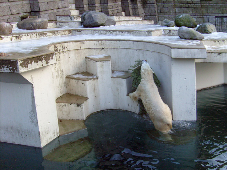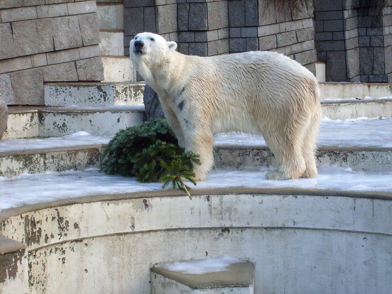 Eisbärin Jerka mit Tannenbaum im Wuppertaler Zoo am 26. Dezember 2009.
