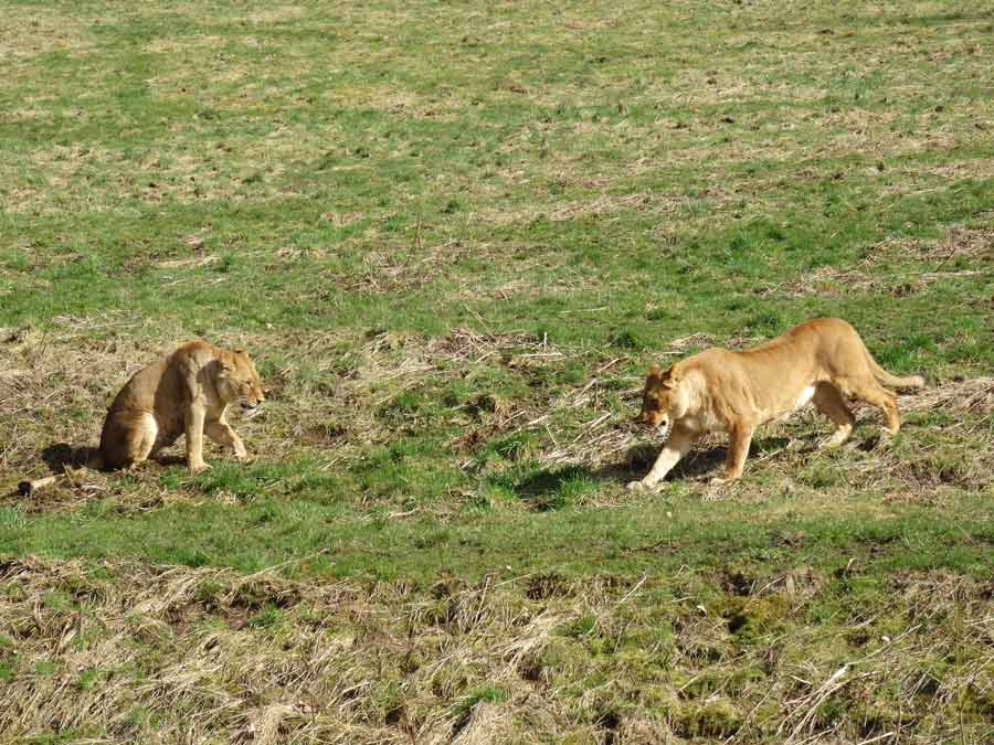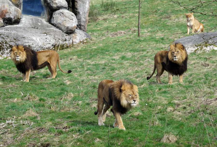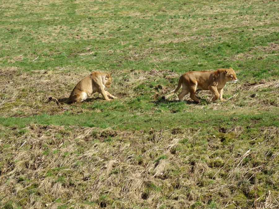Afrikanische Löwen im Grünen Zoo Wuppertal im April 2015.