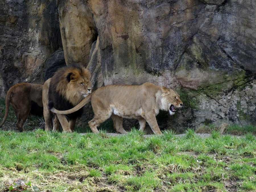 Afrikanische Löwen im Wuppertaler Zoo im April 2015.