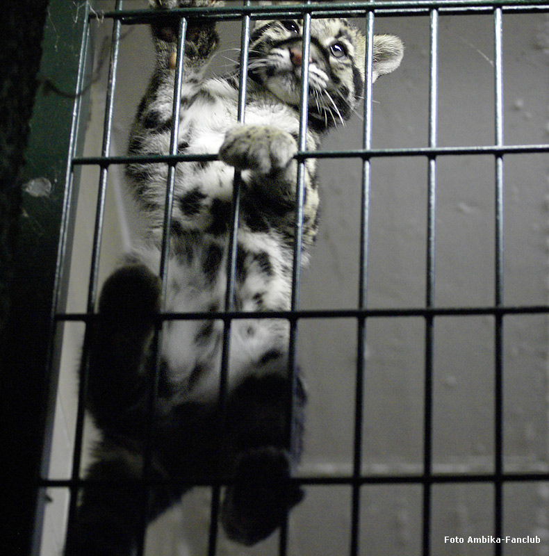 Nebelparder Jungtier AMBIKA im Wuppertaler Zoo im Januar 2012.