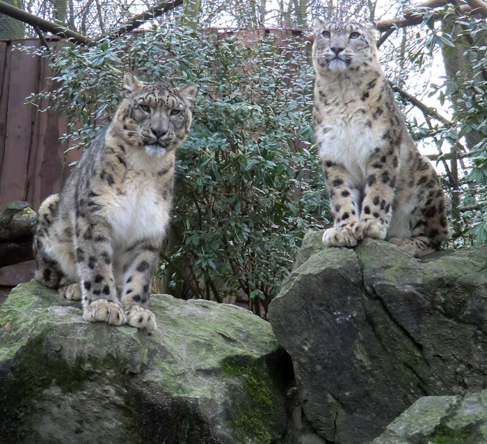 Schneeleoparden (Panthera uncia Synonym Uncia uncia) im Wuppertaler Zoo im Januar 2012.