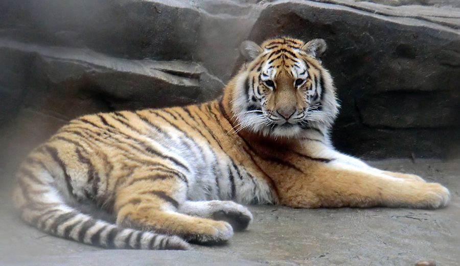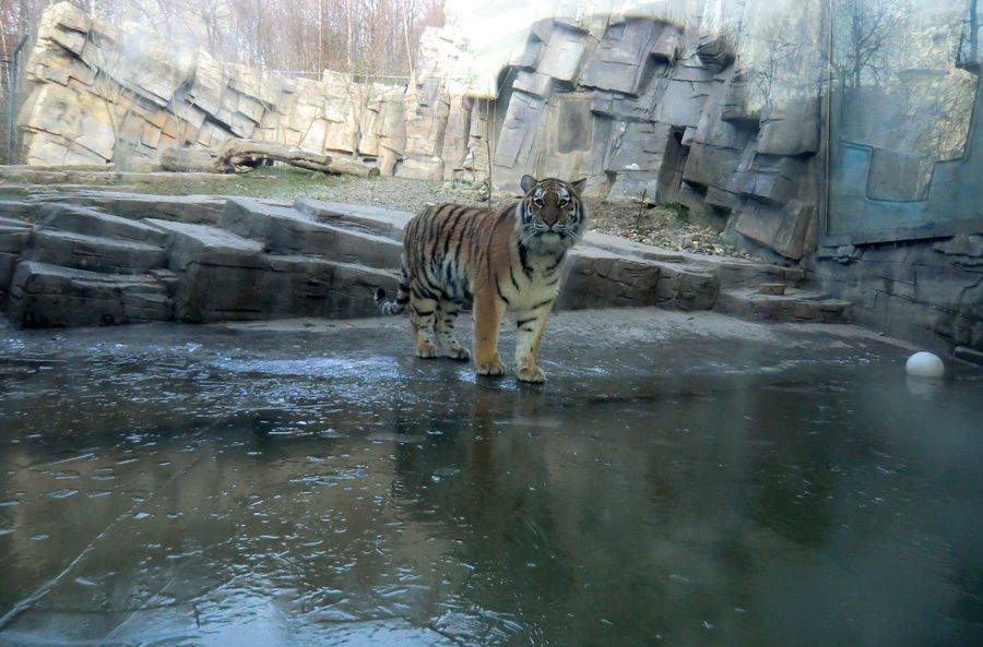 Sibirisches Tigerjungtier TSCHUNA im Zoo Wuppertal am 14. Januar 2012.