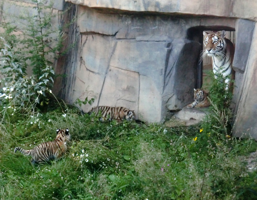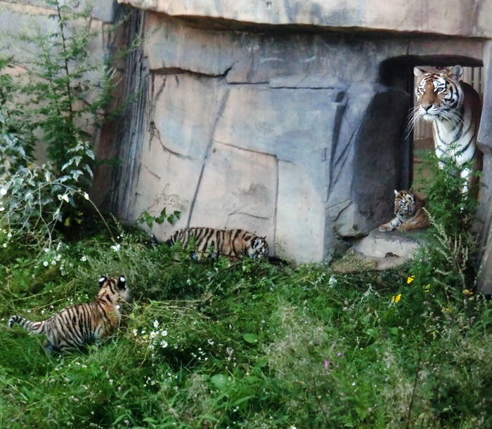Sibirische Tigerin MYMOZA mit Jungtieren im Wuppertaler Zoo am 27. August 2012.