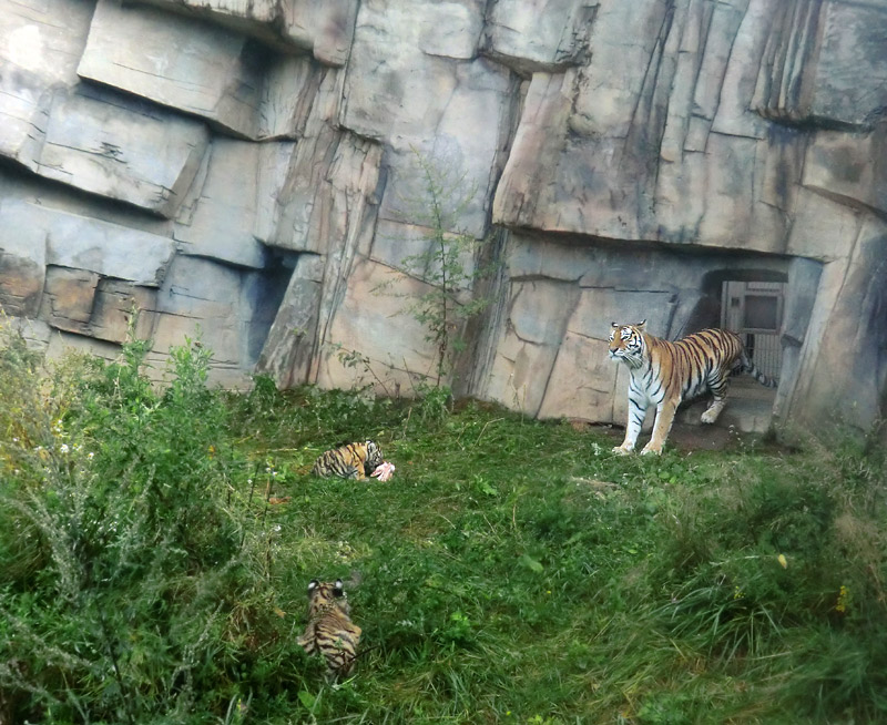 Sibirische Tigerin MYMOZA mit Jungtieren im Zoo Wuppertal am 27. August 2012.