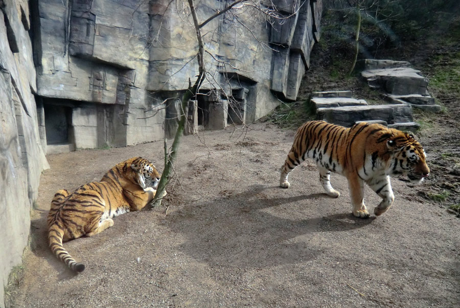 Zoff unter den Sibirischen Tigern im Wuppertaler Zoo am 20. Februar 2012.