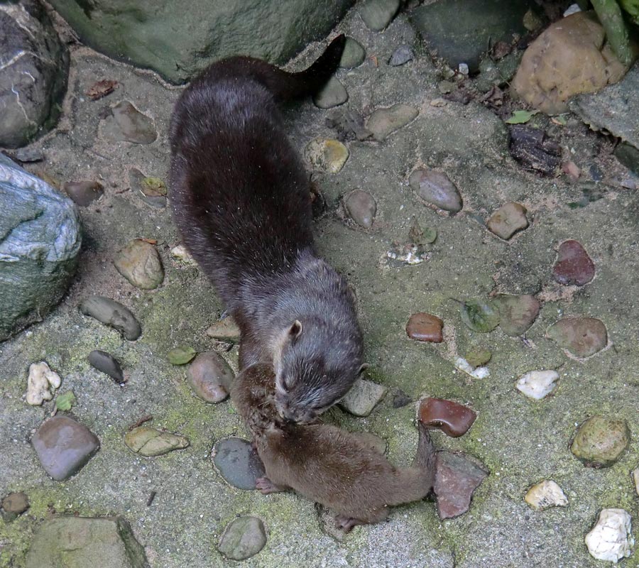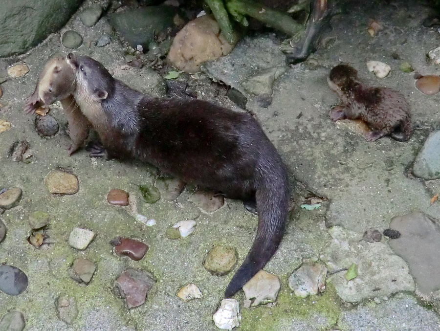 Immer häufiger in ihrer Außenanlage zu sehen sind inzwischen auch die beiden jungen Kurzkrallenotter, die am 11. Juni 2012 zur Welt gekommen sind.