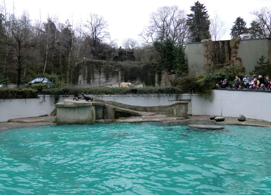 Kalifornische Seelöwen (Zalophus californianus) im Wuppertaler Zoo am 24. Dezember 2011.