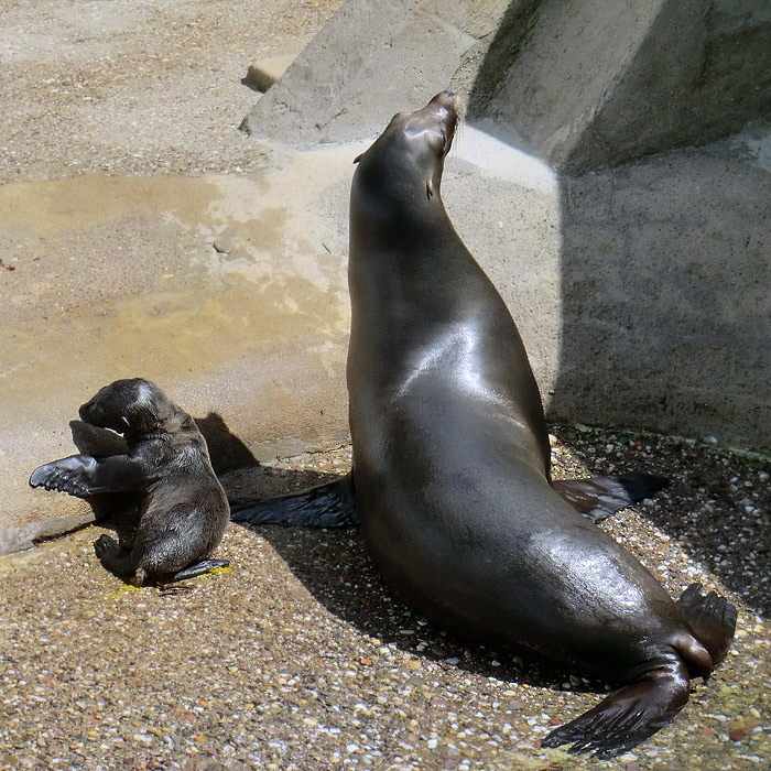 Jungtier "Pina" blieb auf festem Boden und in der Nähe der Mutter "Cosima". In Kürze wird ein weiteres Jungtier bei der Seelöwin "Pebbles" erwartet.