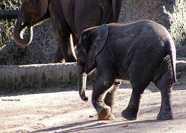Das Elefanten-Baby "Tamo" mit "Tika" im Februar 2008 im Wuppertaler Zoo.