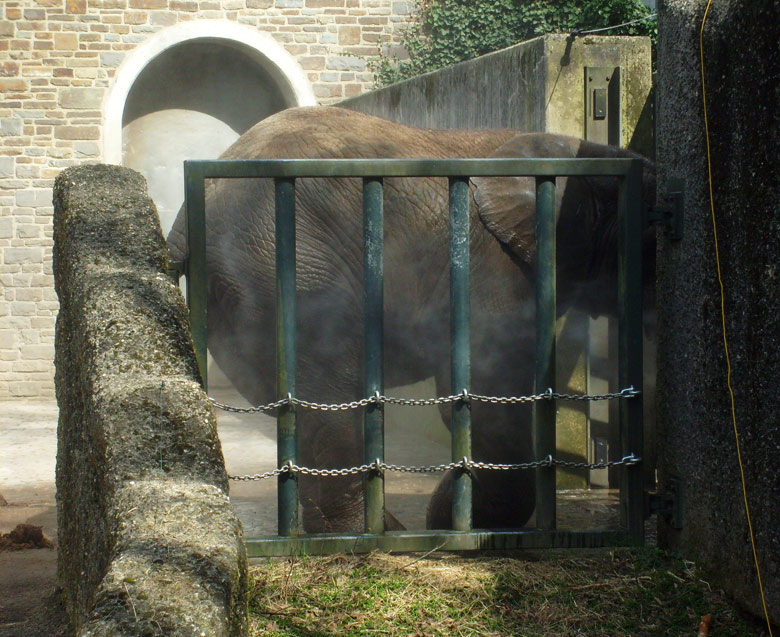 Der Afrikanische Elefantenbulle im Wuppertaler Zoo ging im April 2010 vorsichtig rückwärts.