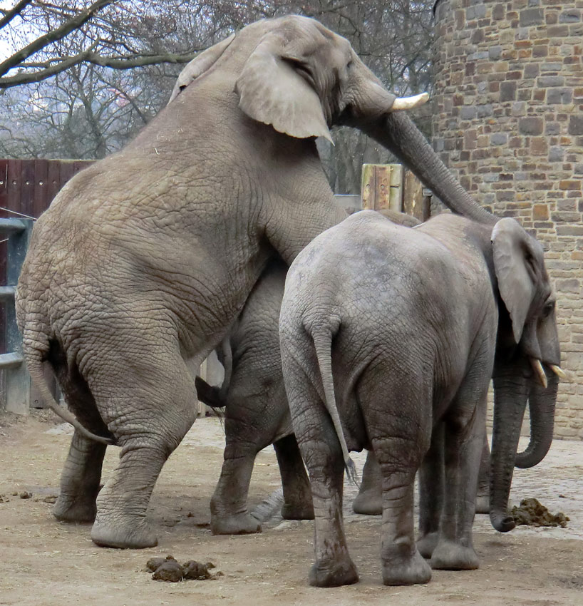 Am 17. März 2012 konnten zahlreiche Besucher/innen die Paarung der Afrikanischen Elefanten im Zoologischen Garten der Stadt Wuppertal beobachten.