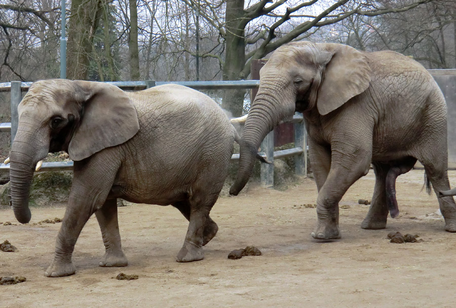 Paarung der Afrikanischen Elefanten im Wuppertaler Zoo im März 2012.