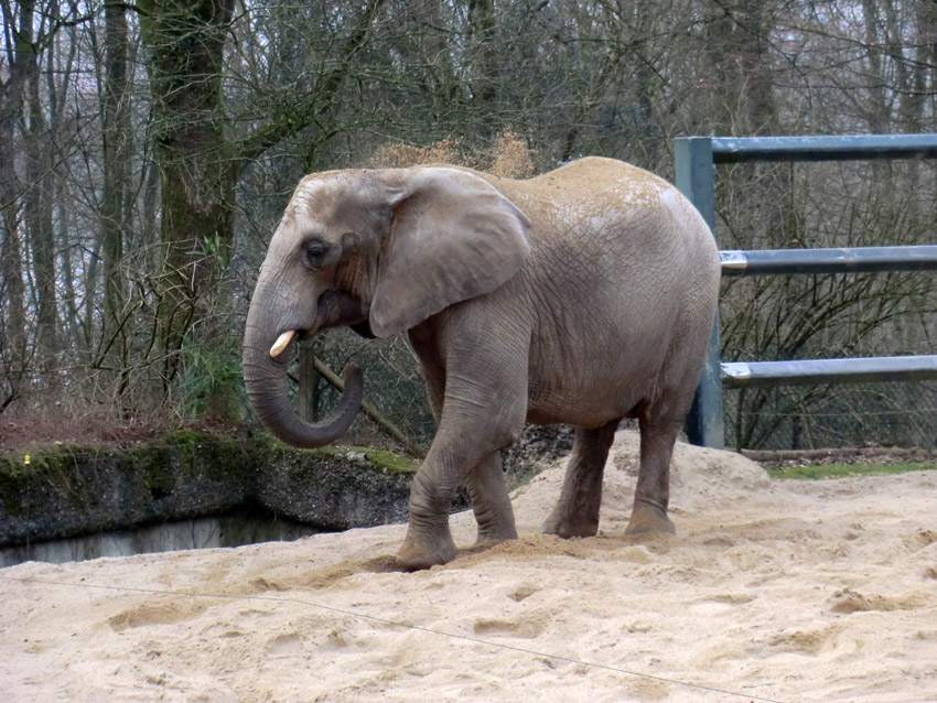 Sandbad der Afrikanischen Elefantenkuh im Wuppertaler Zoo im März 2012.