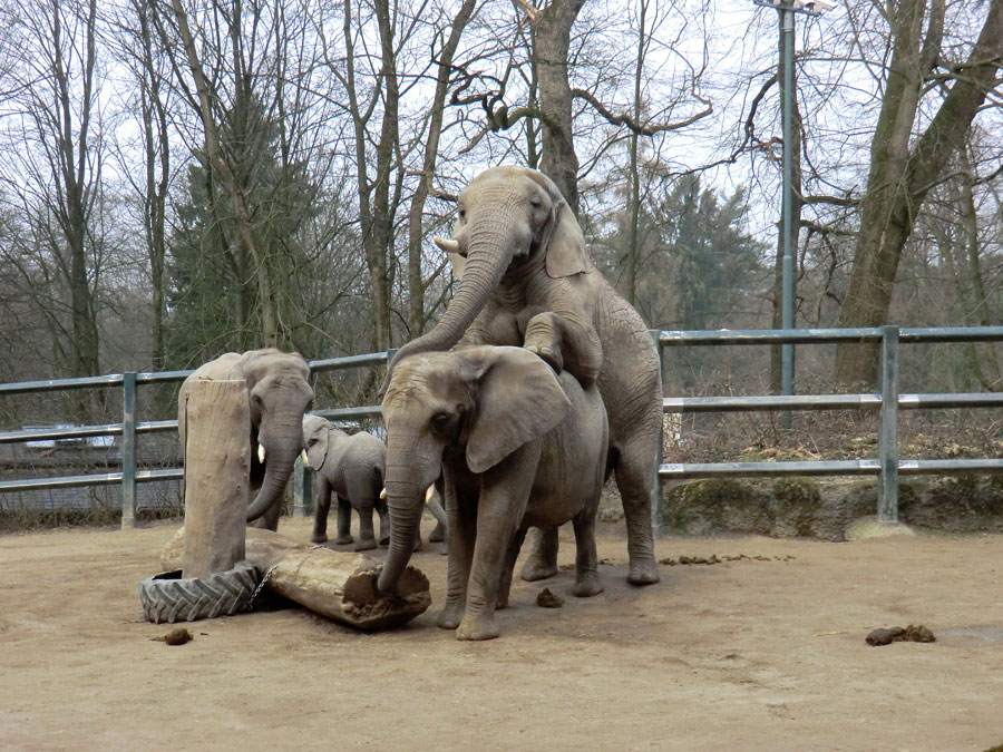 Afrikanische Elefanten im Wuppertaler Zoo im März 2012.