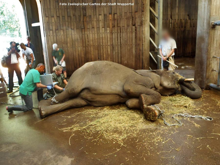 Behandlung des Afrikanischen Elefantenbullen "Tusker" im Wuppertaler Zoo im September 2012.