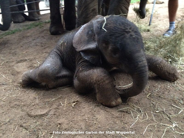 "Pina" so der Rufname des kleinen Elefanten, konnte sich schon unmittelbar nach der Geburt auf den Beinen halten und begann nach etwa 1 ½ Stunden zu trinken.
