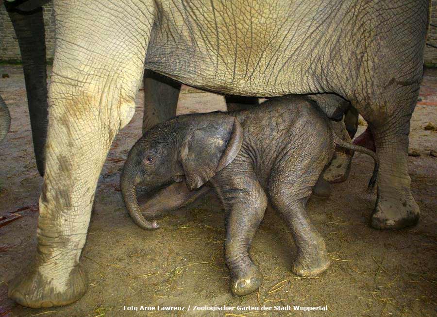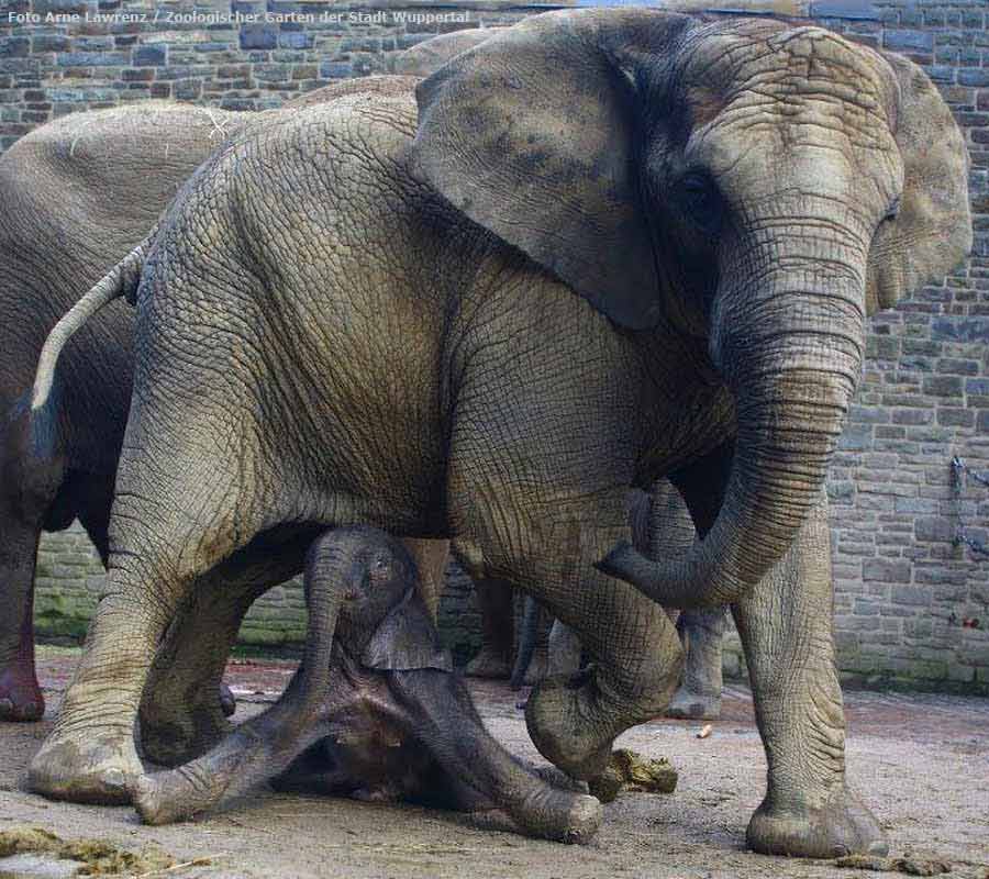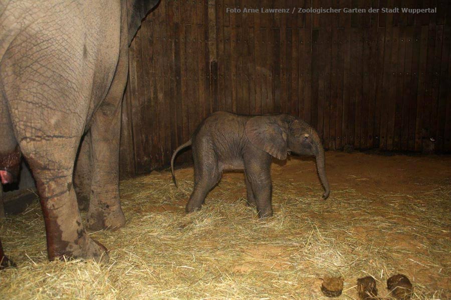 Gestern Abend um 19:00 Uhr kam im Elefantenhaus ein kleiner Elefant zur Welt.