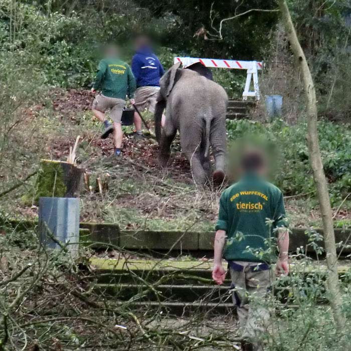 Einen Afrikanischen Elefanten auf ungewöhnlichen Wegen konnten Besucher/innen im Januar 2014 im Zoologischen Garten der Stadt Wuppertal beobachten.
